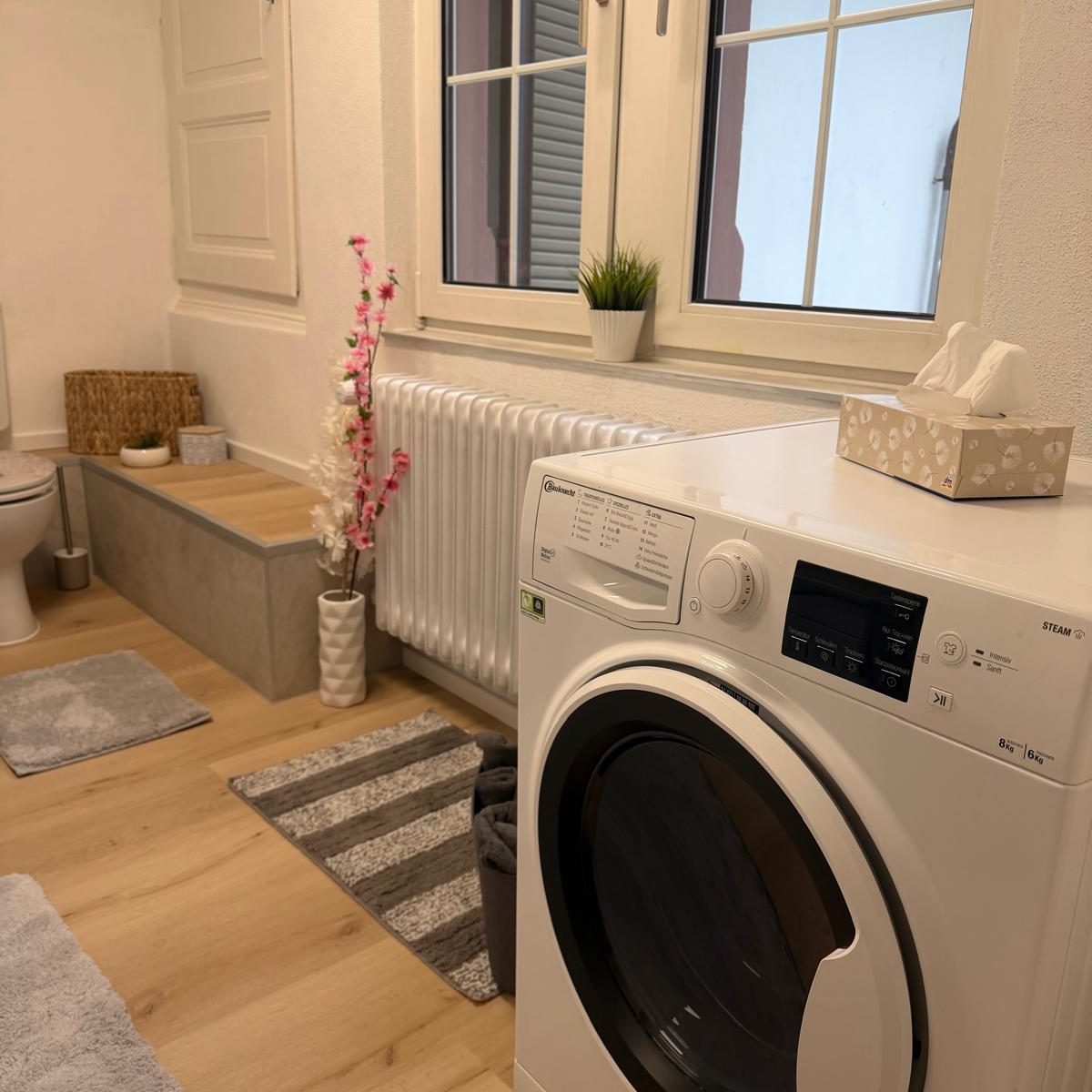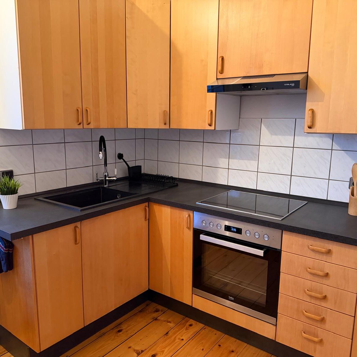 Alles, was Sie für Ihren Aufenthalt benötigen. Voll ausgestattete Küche mit Kühlschrank, Gefrierfach, Kaffeemaschine für Pads und Filterkaffee, kleiner Geschirrspüler, Toaster, Wasserkocher, Backofen und Herd. Badezimmer mit Wanne, Dusche und Wasch-Trockner-Kombination, Handtüchern und WC. Die Betten sind frisch bezogen und verfügen über Kissen und Bettwäsche. Es steht ein großes Doppelbett im Schlafzimmer und eine Schlafcouch im Wohnzimmer zur Verfügung. Kostenfreies WLAN, Schreibtisch mit Steckdosen, TV über Kabel und mit Fire-TV-Stick sowie Kinderreisebett, Spiele und Bücher für die Kleinen. Der Fire TV Stick läuft mit den persönlichen Accounts der Gäste, bitte abmelden nach dem Aufenthalt nicht vergessen!