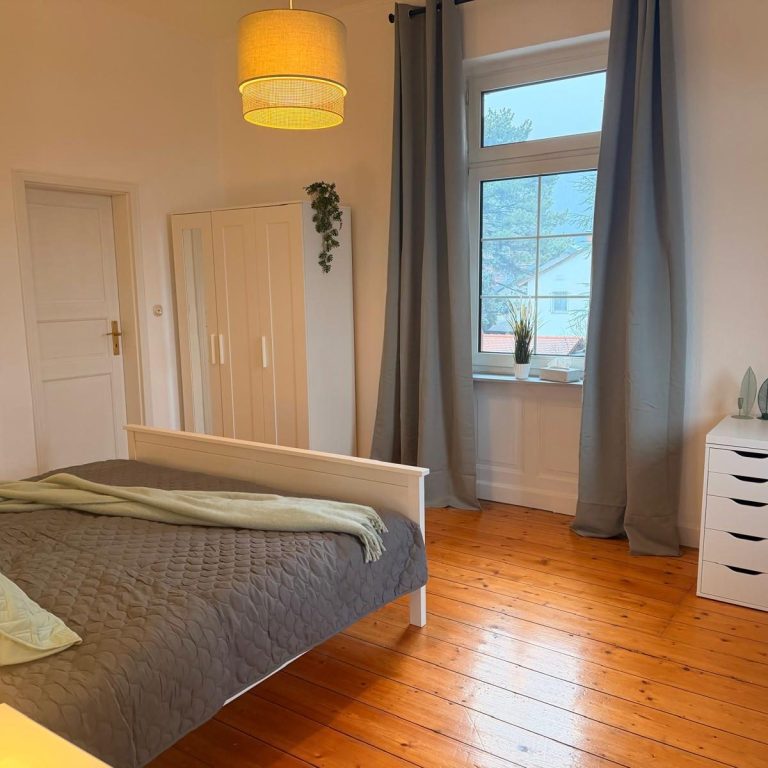 Wunderschöne 56m² Altbauwohnung mit stilvollem Interieur im ersten Stock. Antiker aufpolierter Dielenboden, hohe Decken, antike, frisch restaurierte Zimmertüren erinnern an das Baujahr dieser alten Stadtvilla 1889. Die Wohnung verfügt mit einem Doppelbett im Schlafzimmer und einer Schlafcouch im Wohnzimmer über vier Schlafplätze. Zur Wohnung gehört ebenfalls ein Gartenstück, das gerne genutzt werden darf.
